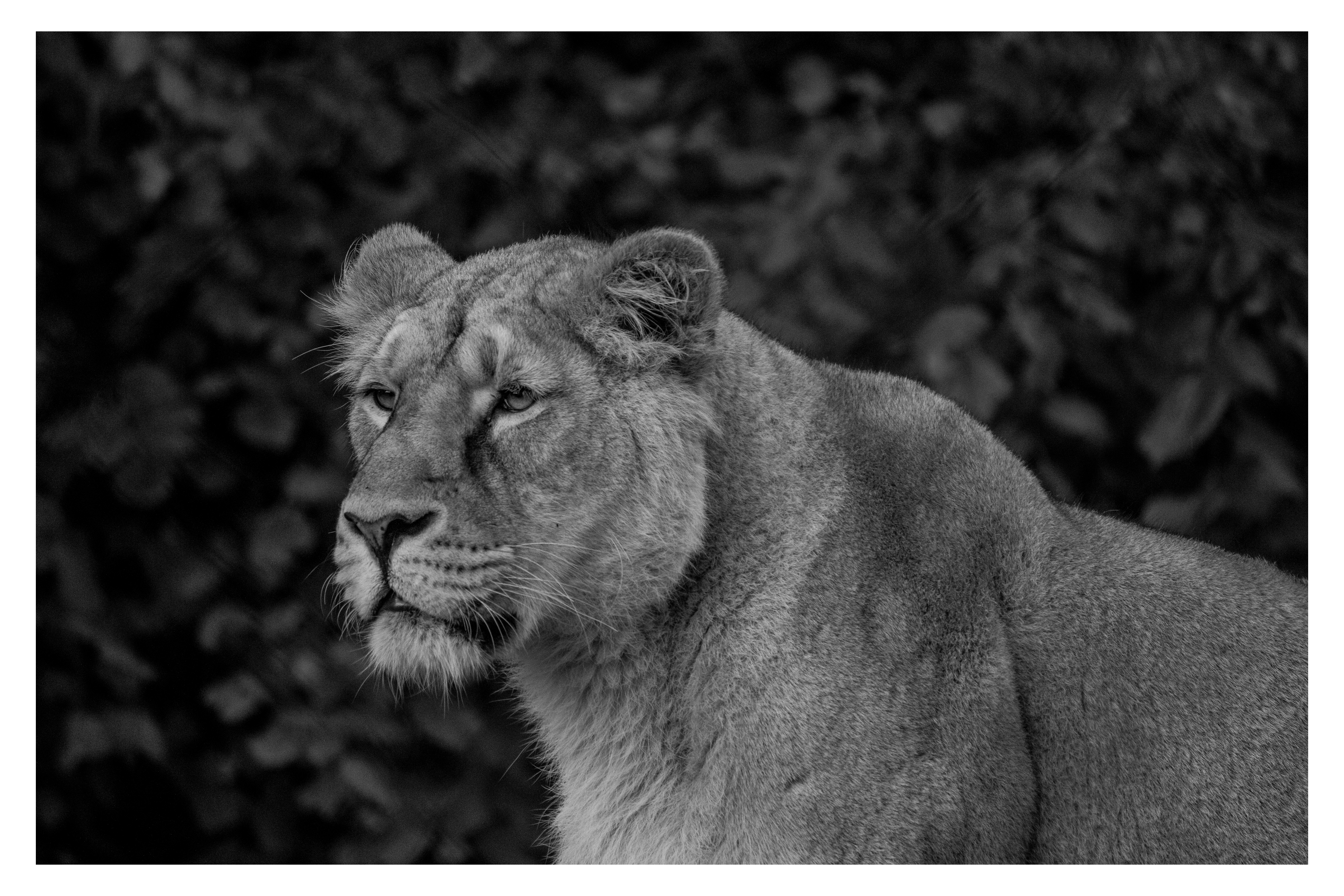We then headed over to the Lions. This was a tricky shot as the cage is very prominent. If I had a few more stops on the lens then it wouldn’t have been much of an issue. Some editing helped reduce what was here, and the monochrome suits it much better than colour.
